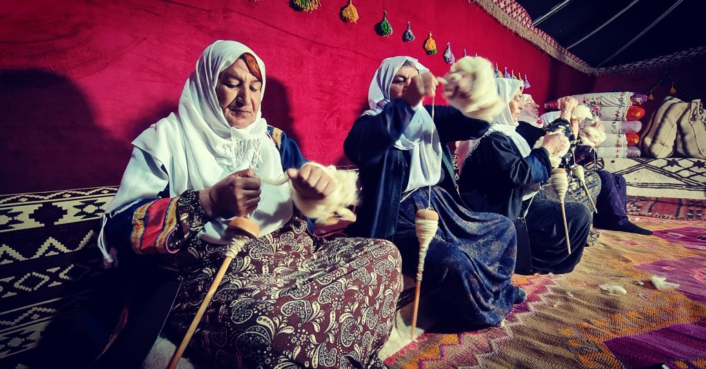 Dema em dibêjin teşî ji xwe hiriya mihan û mûyê bizinan pêwîst e û civaka xwedî terş û sewal civaka koçer e. Koçeran ji bo çêkirina pêdiviyên xwe ji cilûbergan, tevn, têr, merş û kon teşî bikar tanîn. Koçeran di despêkê de hiriya mihan û mûyê bizinan dibirîn piştre ew dişûştin û ziwa dikirin, paşê ew hirî û mû bi hin şehên taybet dişkinîn heya nerm dibû, piştre teşîrêsan ew hirî li destên xwe di alandin û bi teşiyan diristin, dikirin ta û rîs û paşê ta û rîs dikirin bor û gilok û bi herikîna demê re, ev kar şêweyekî hunerî civakî digire ku bi ristinê re gelek stranên girêdayî teşiyê û teşîrêsan tê strandin.